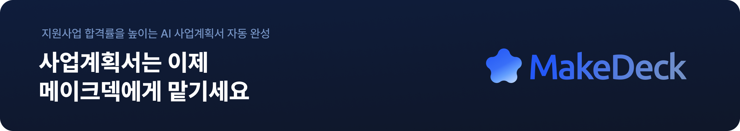 사업계획서 작성이 막막하시다면, 정부지원사업 1등 AI 솔루션 메이크덱(MakeDeck)을 활용해 보세요.