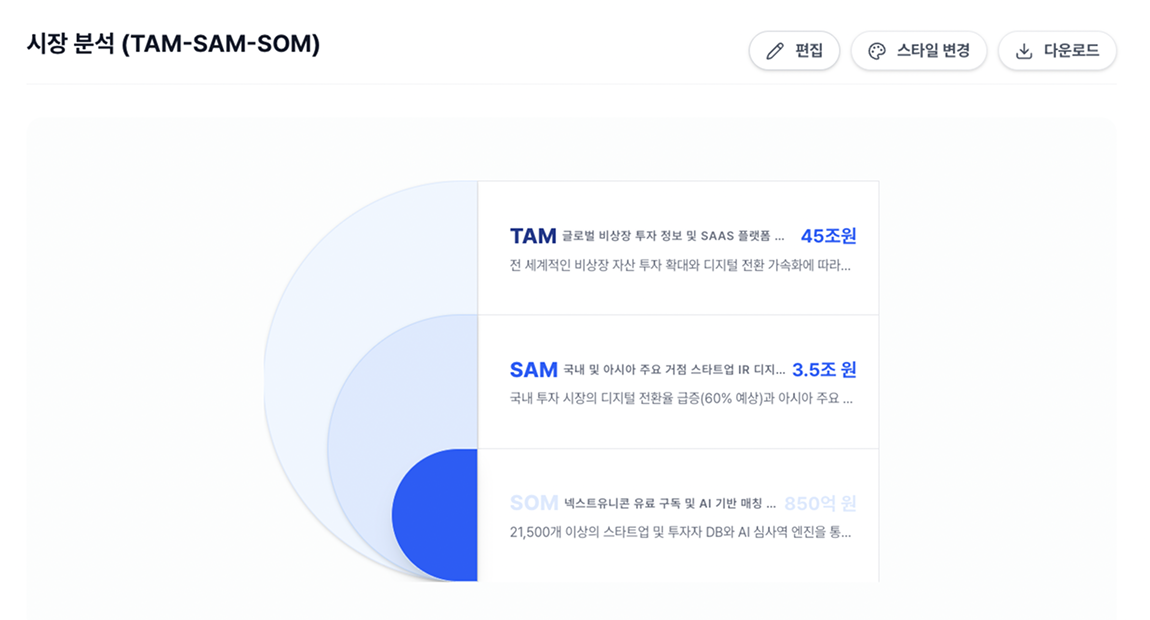 시장 분석(TAM-SAM-SOM)부터 복잡한 기술 아키텍처, 서비스 프로세스까지!