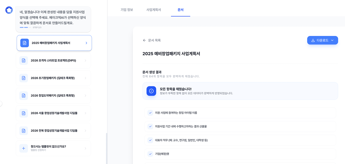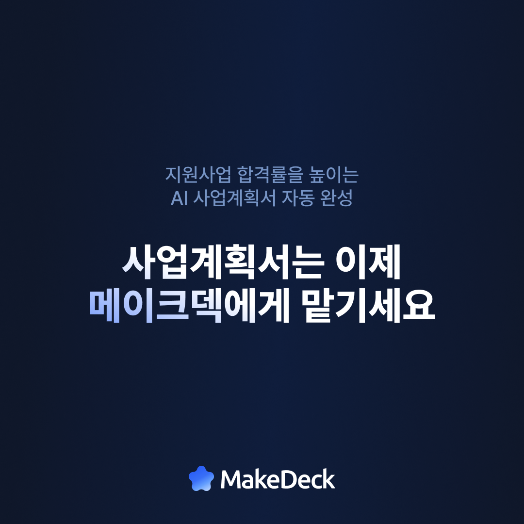 메이크덱(Makedeck) | AI 사업계획서 자동 완성 및 정부지원사업 합격 솔루션